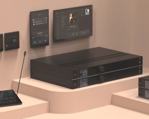 Der Lautsprecher verfügt über einen breiten Abstrahlwinkel und sorgt für eine natürliche, transparente Sprachwiedergabe aller teilnehmenden Personen im Meeting. Das MXA902 wird über den PoE+-Anschluss via Cat-Kabel mit Strom versorgt und benötigt keine externe Endstufe. Der maximale Schaldruckpegel liegt bei 86 dB SPL.