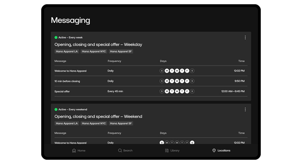 Ebenfalls neu ist die Möglichkeit, eigene Audioansagen und Werbebotschaften direkt in die Musikplanung zu integrieren. So lassen sich etwa tageszeitabhängige Hinweise, Aktionsangebote oder Serviceinformationen gezielt einspielen – automatisch oder auf Abruf. Für Betreiber von Stores oder Gastronomiebetrieben eröffnet die neue Messaging-Funktion eine einfache Möglichkeit, das Kundenerlebnis auszubauen und Kunden noch gezielter anzusprechen.
